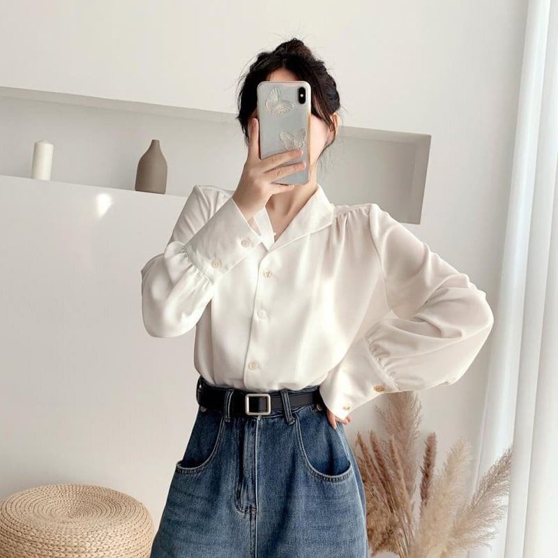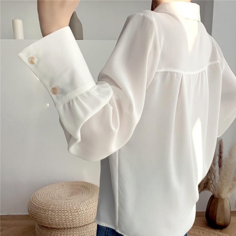 送料無料 レディース 無地長袖シャツブラウス 春秋冬 白 ブルー オフィス フォーマル シンプル 韓国ファッション 20代30代40代