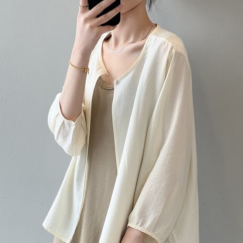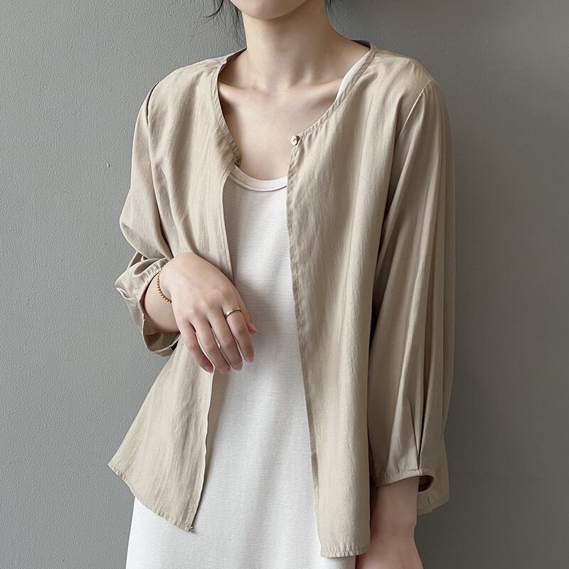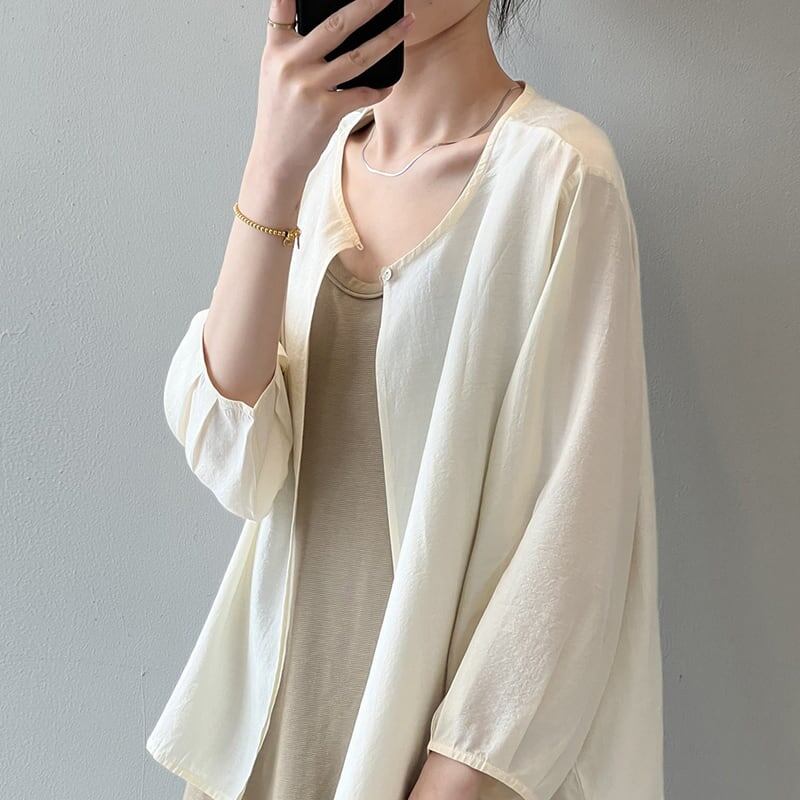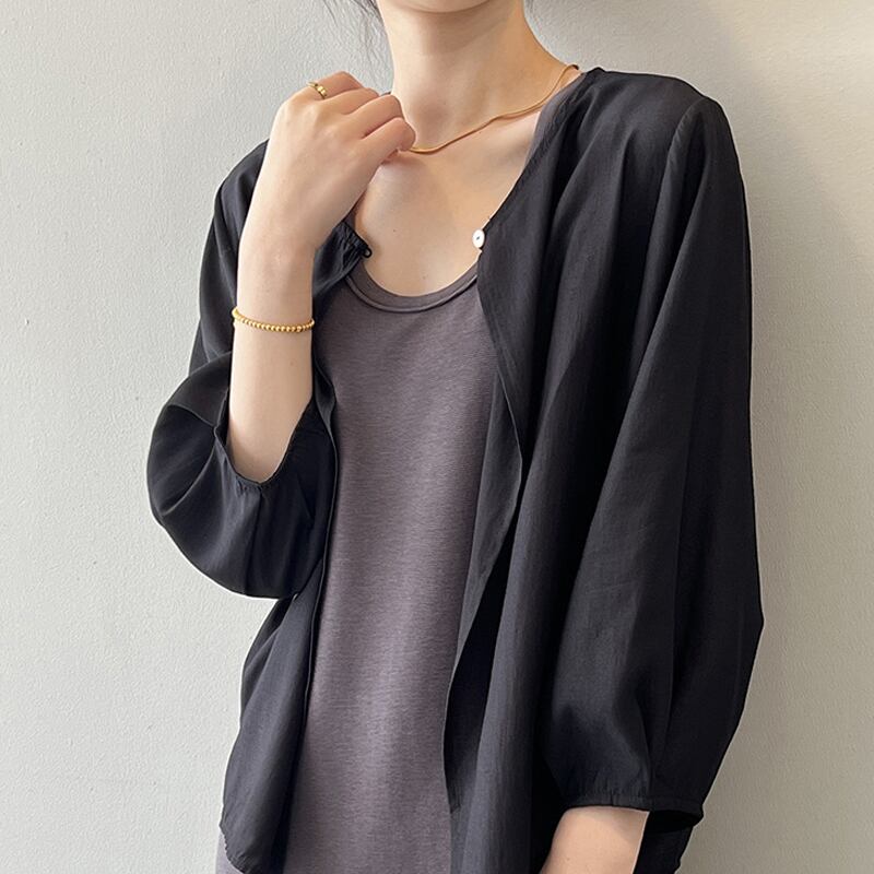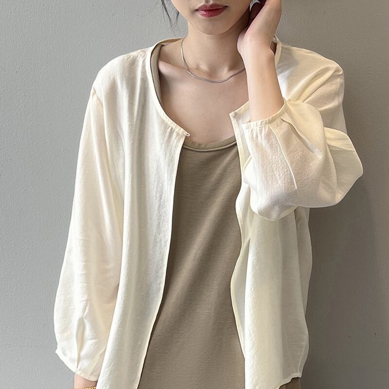 送料無料 レディース 長袖カットソー Uネック ボリューム袖 シンプル 韓国ファッション ホワイト ブラック ベージュ 日焼け対策 20代30代40代