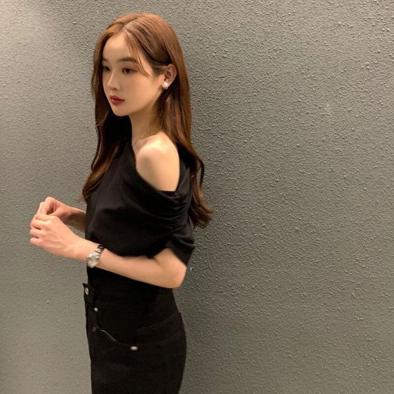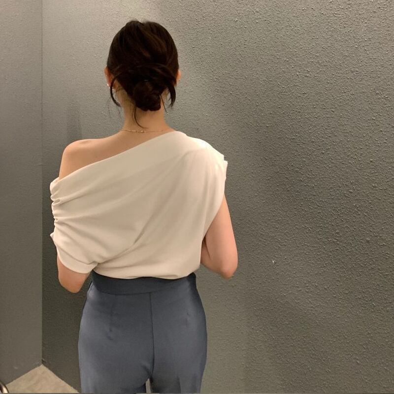 送料無料 レディース 春新作 カットソー ノースリーブ オフショルダー アシンメトリートップス ホワイト ブラック イエロー 20代 30代