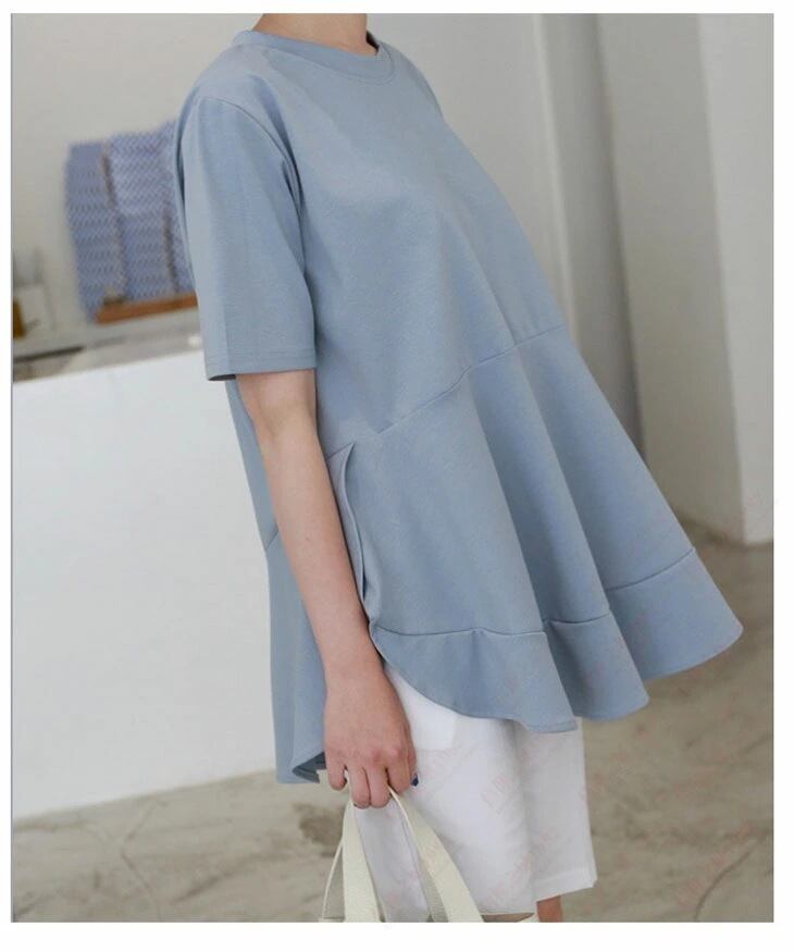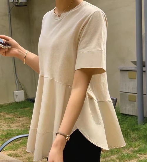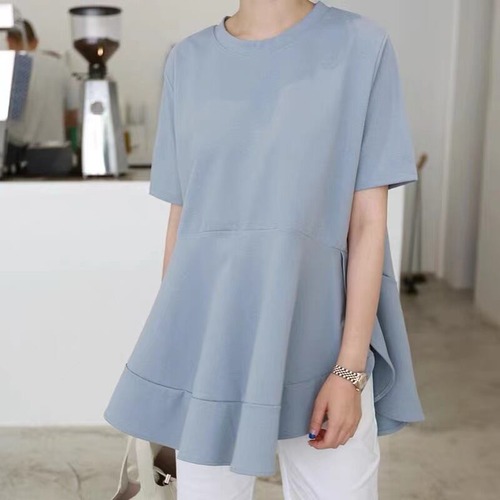 送料無料 春新作 レディース カットソー チュニック 半袖 ロング丈 Aライン シンプル 大きいサイズ フレンチスリーブ 韓国ファッション