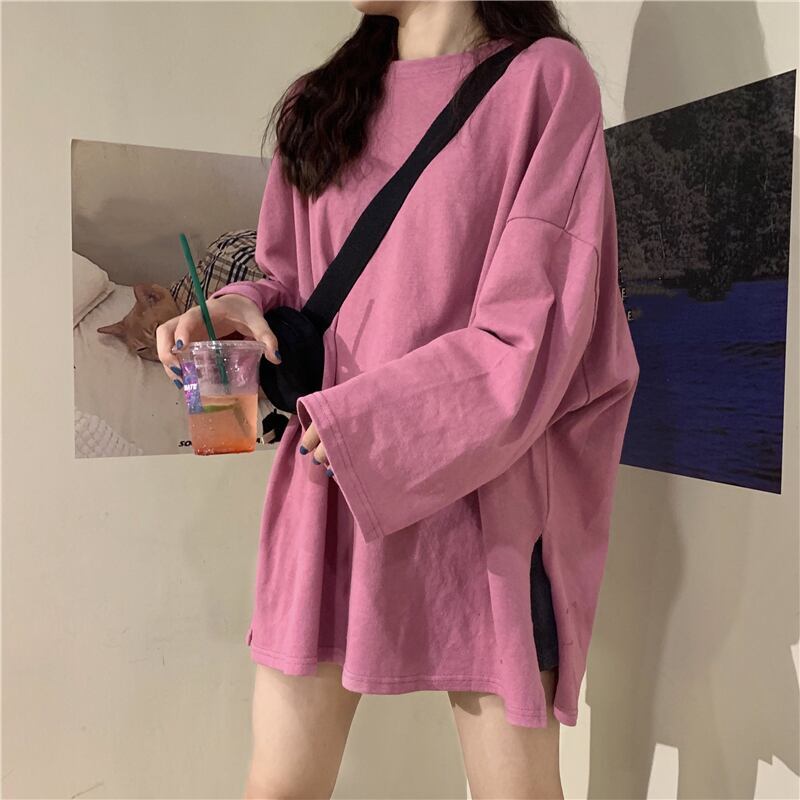 送料無料 レディース 春秋両用 長袖 シンプル無地 韓国ファッション 大人おしゃれ オーバーサイズ ビッグシルエット カットソー トップス