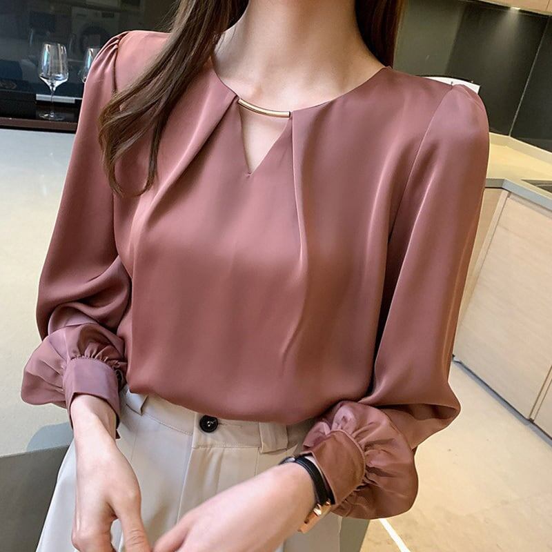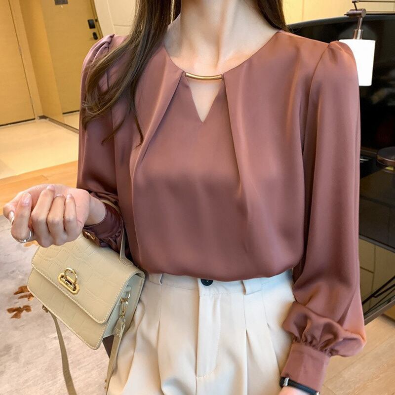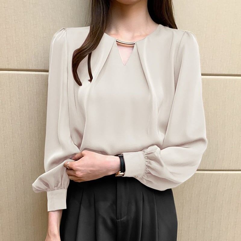 送料無料 レディース 韓国風 無地長袖ブラウス 春秋冬 大きいサイズ オフィス 通勤 通学 フォーマル 上品 大人可愛い 20代30代40代 ホワイト ピンク