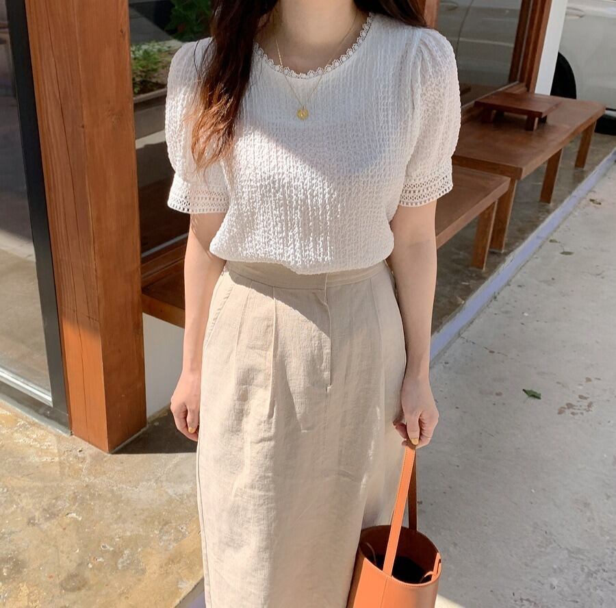 送料無料 レディース 韓国ファッション 半袖ブラウス シャツ 春秋 大人可愛い きれいめ 大人カジュアル 通勤 ホワイト 20代30代40代