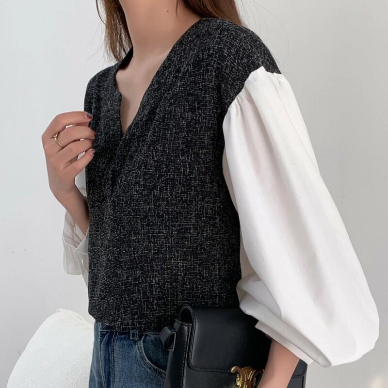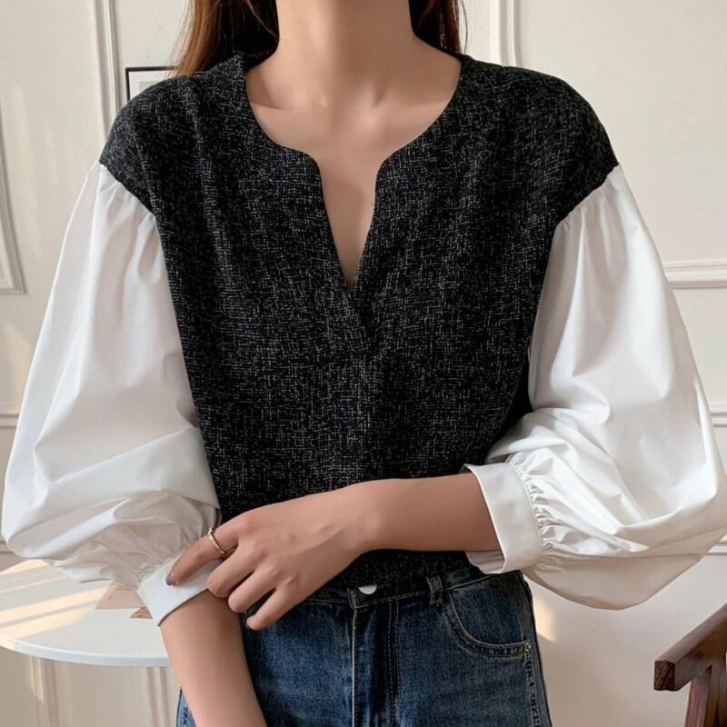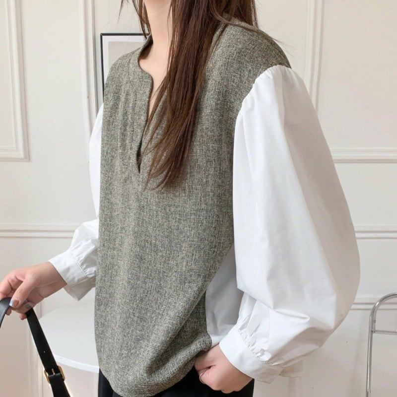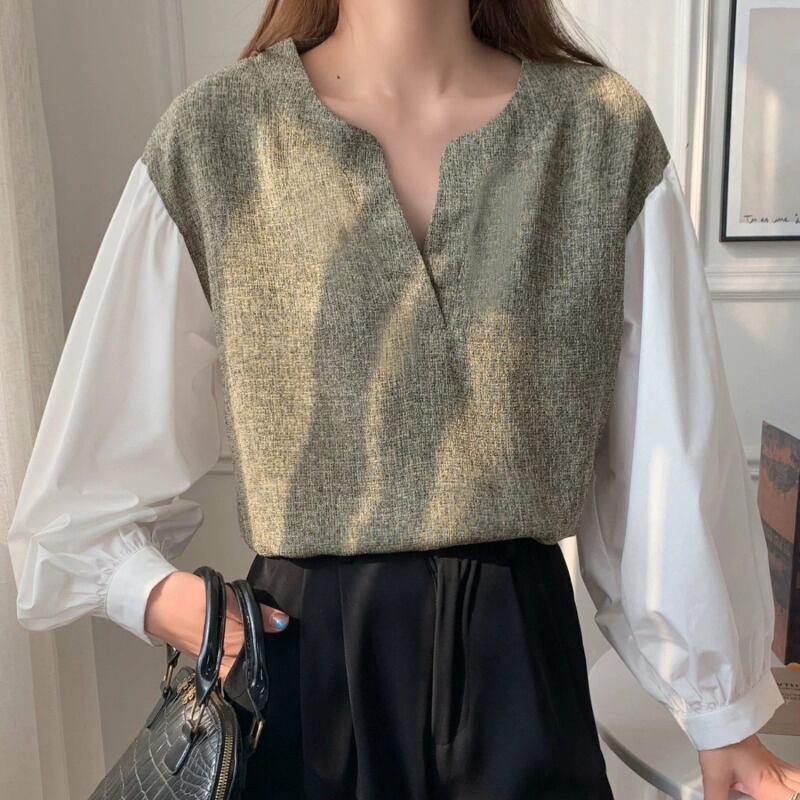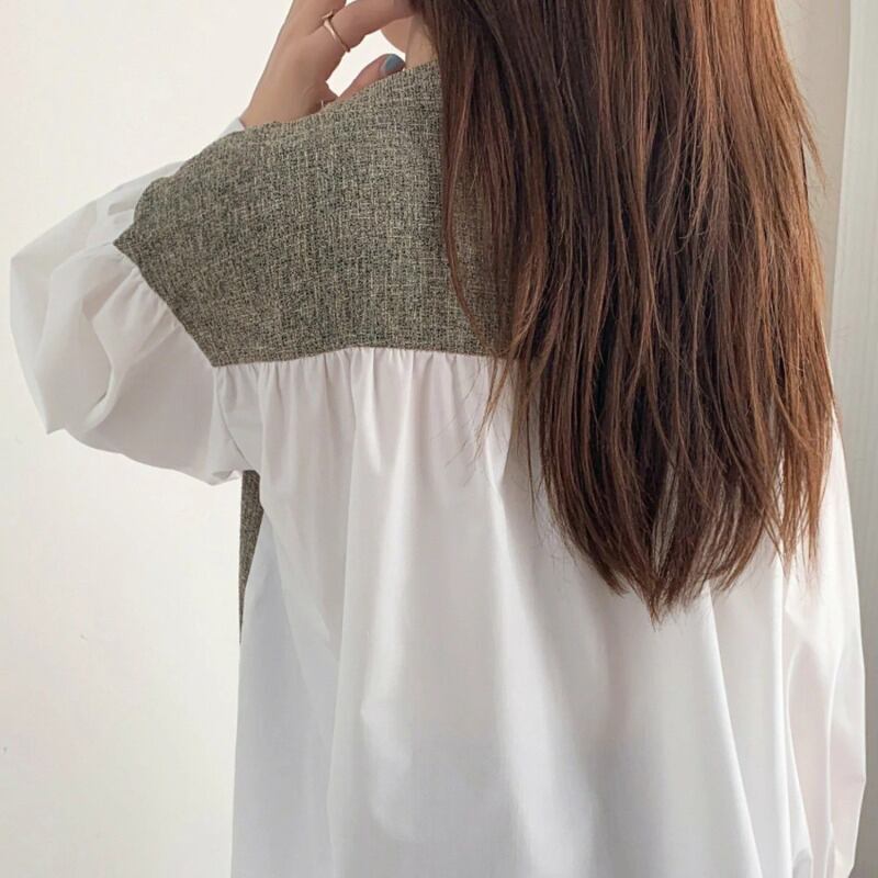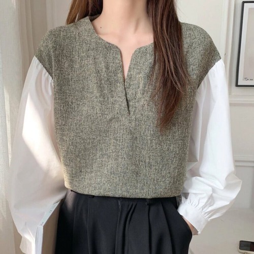 送料無料 レディース長袖ブラウス 無地 キーネック 春秋冬 オフィス 通勤 通学 フォーマル 重ね着風 シンプル 大人可愛い 20代30代40代