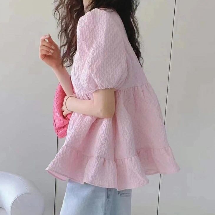 送料無料 レディースブラウス 春秋冬対応 春新作 エンボス加工 半袖 韓国ファッション 大人可愛い 白 黒 ピンク 20代30代ママ向け