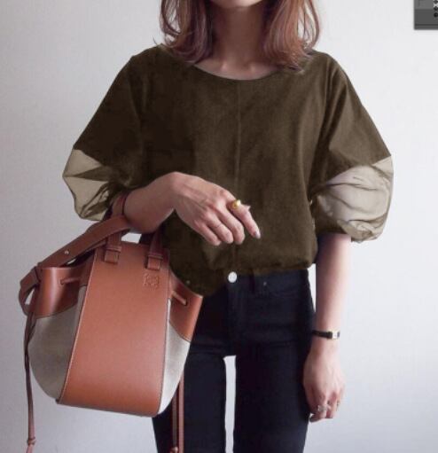 送料無料 レディース 韓国風 シャツブラウス 無地 シンプル 半袖 ボリュームスリーブ 着回し 春秋冬 通勤 オフィス 大人可愛い トップス