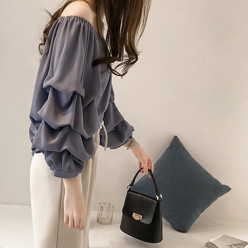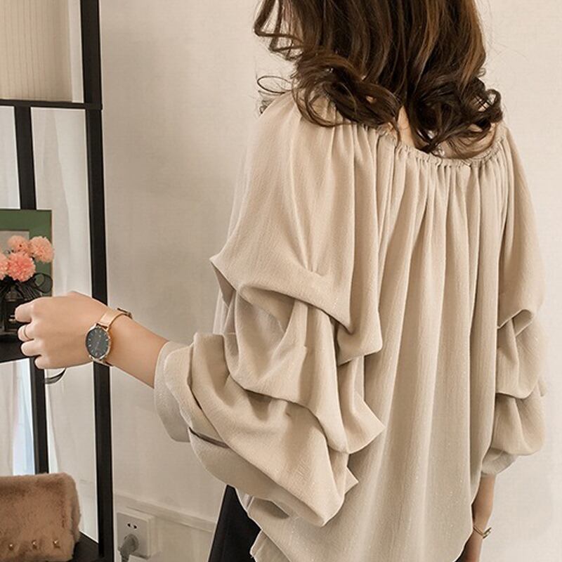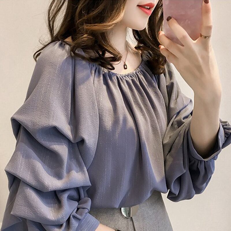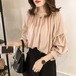 送料無料 春秋 春新作 レディースブラウス 長袖 大人可愛い カジュアル オフィスカジュアル 無地 ボリュームスリーブ 韓国ファッショントップス