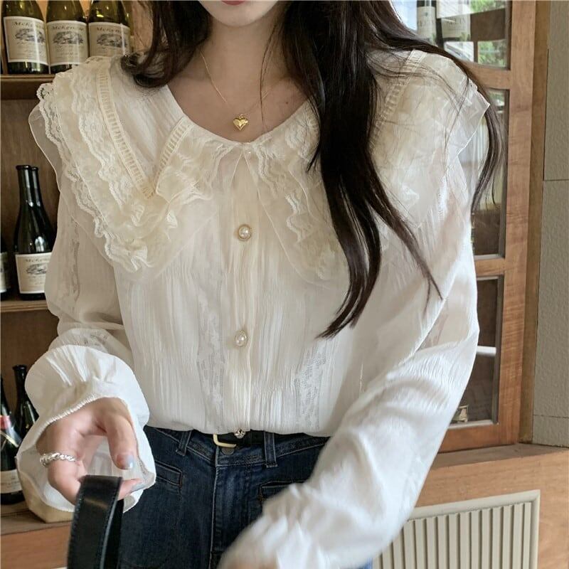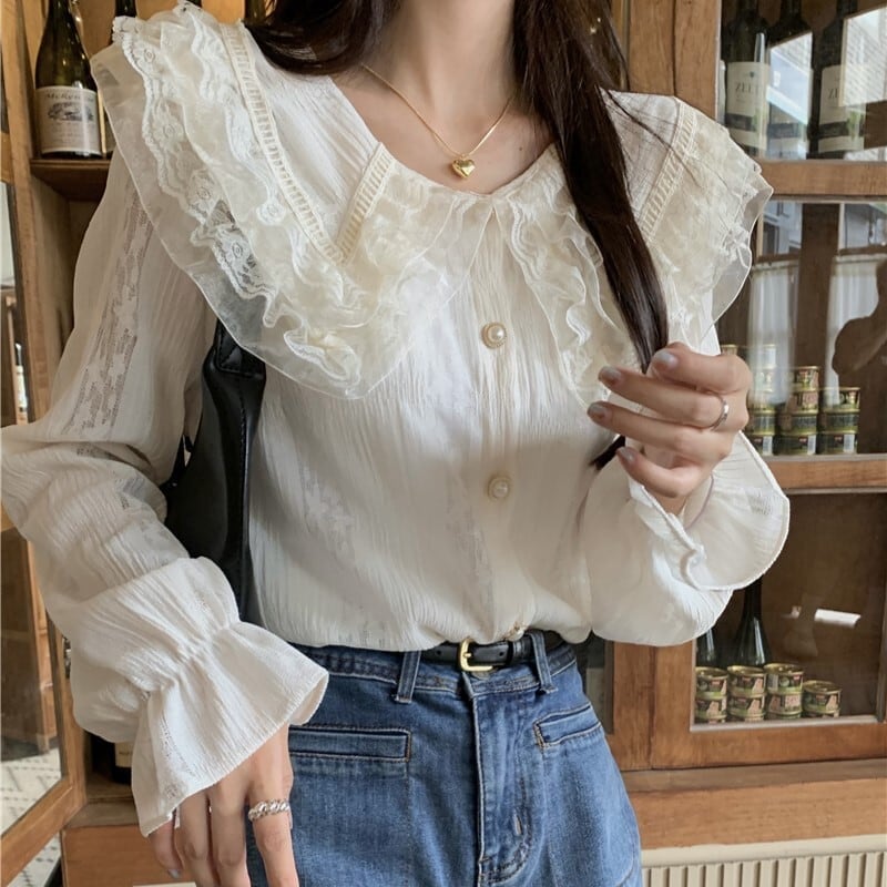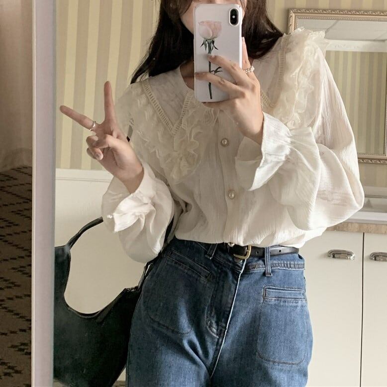 大人可愛いフリル襟が魅力のシャツブラウス!