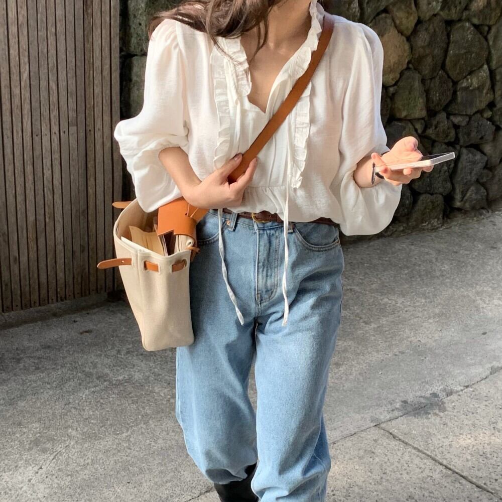 大人可愛いフリルブラウスで、春のおしゃれを先取り!
