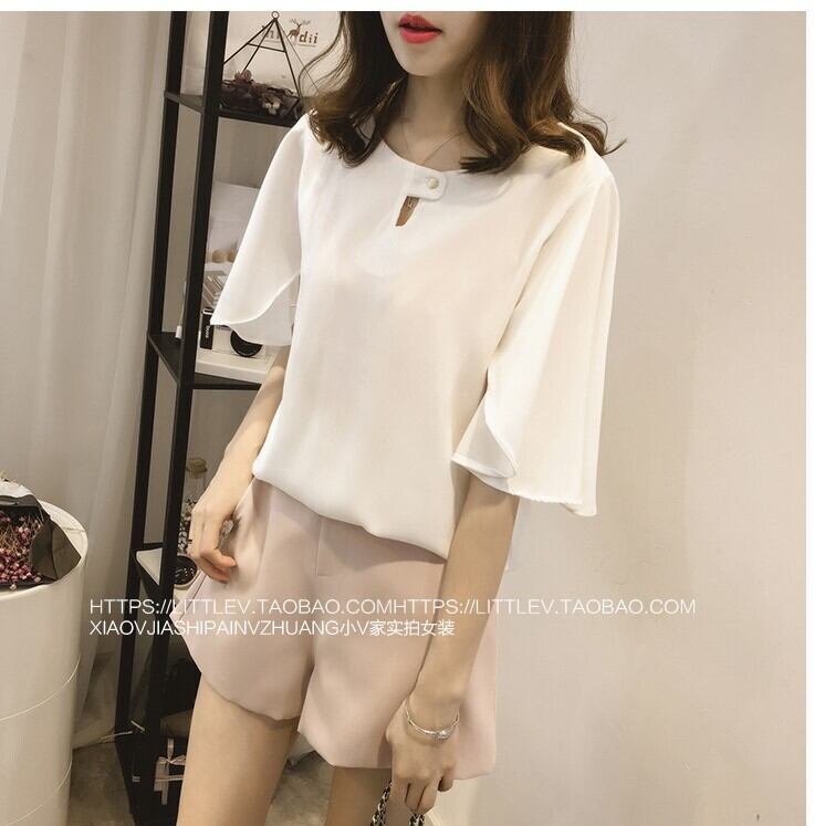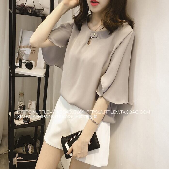 大人可愛いシフォンブラウスで、品格を引き立てて。