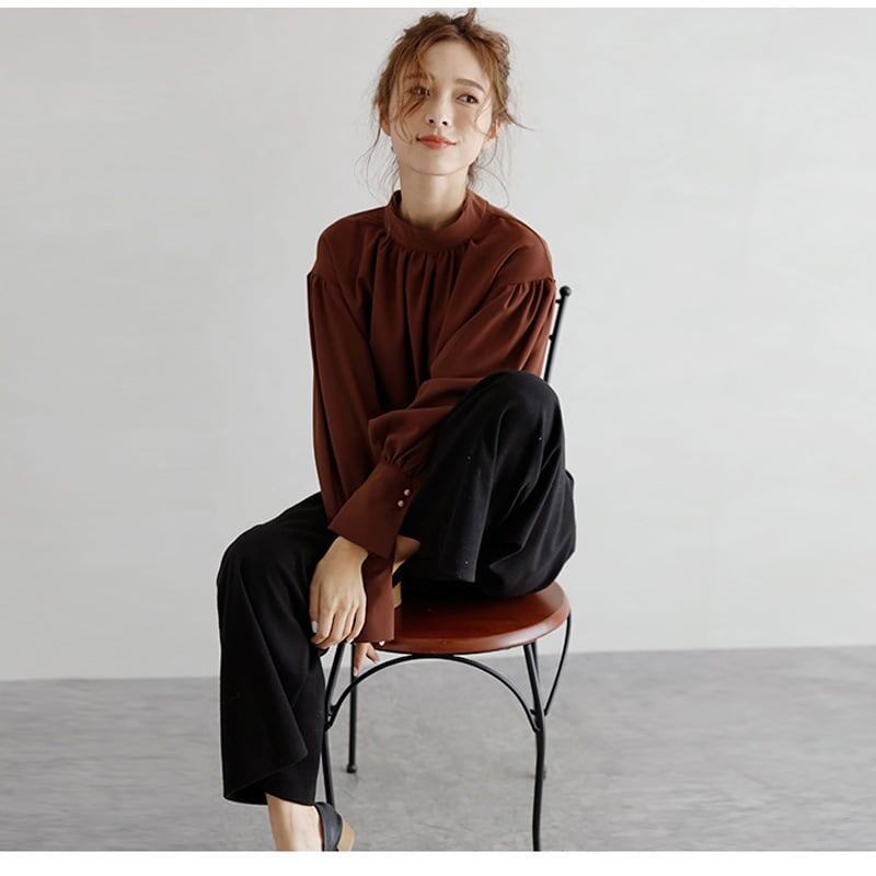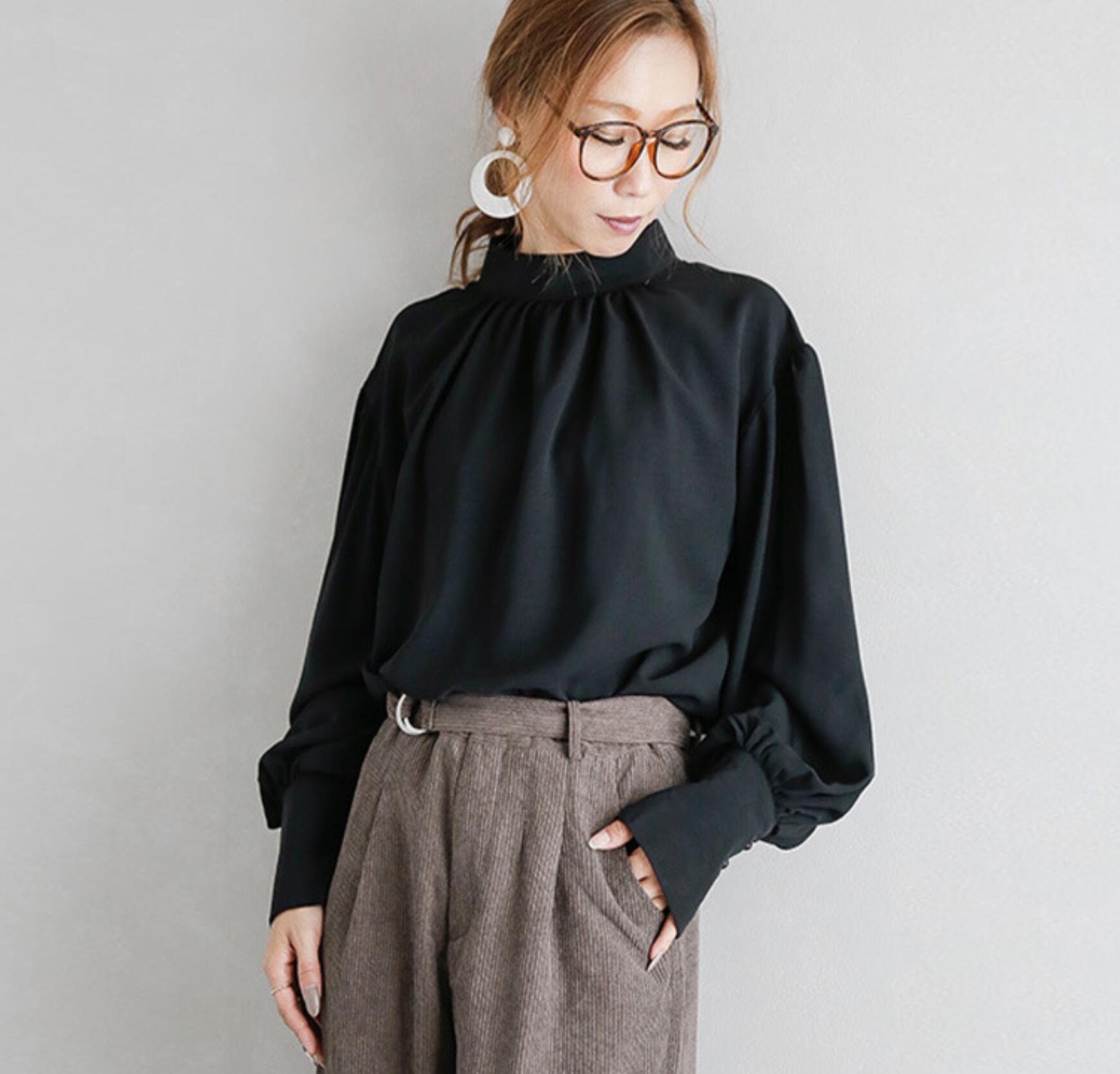 送料無料 人気 レディース 韓国ファッション 長袖 シャツブラウス 白黒無地 春夏秋冬 オフィス通勤向け きれいめ 上品 大人可愛いトップス