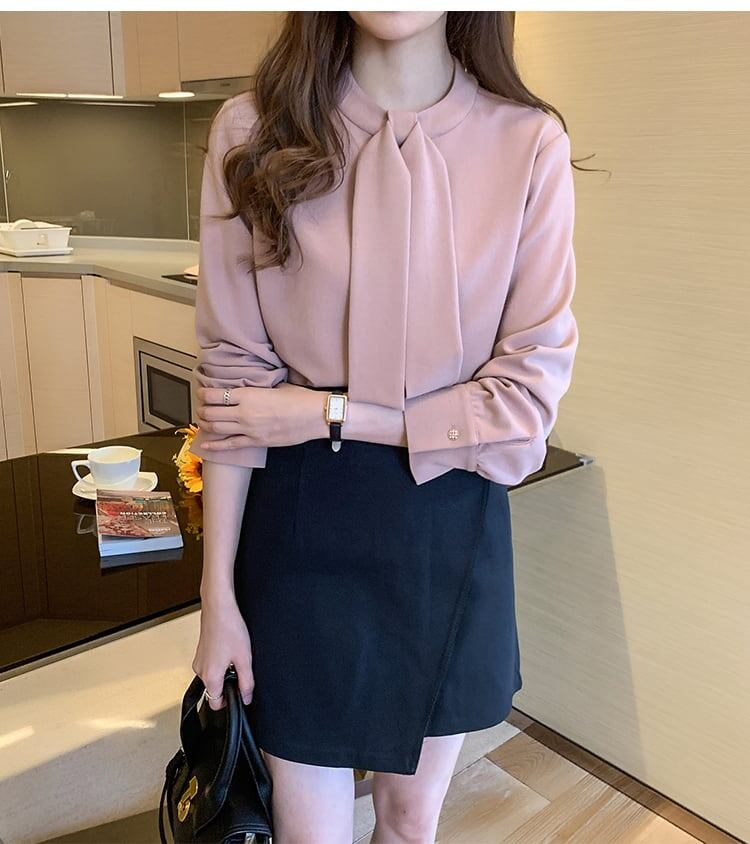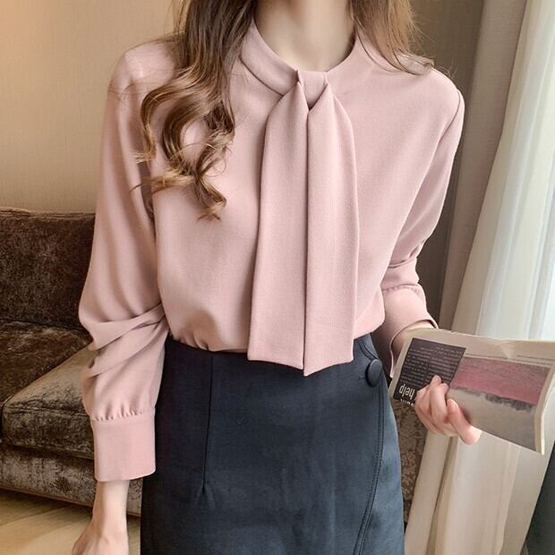 送料無料 レディース シフォン ボウタイ 長袖 ブラウス 白 大きいサイズ 春秋冬 オフィス フォーマル 通勤 大人可愛い 韓国ファッション