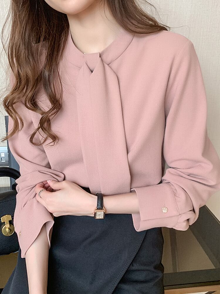 春秋冬、オフィスからカジュアルまで活躍するシフォンブラウス。