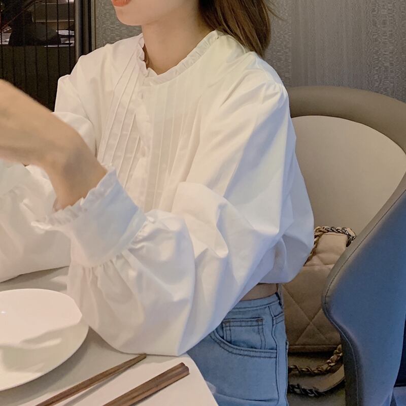送料無料 レディース コットン長袖シャツブラウス 無地 韓国風 きれいめカジュアル オフィス 通勤 フォーマル 春秋冬 白 大人可愛い トップス