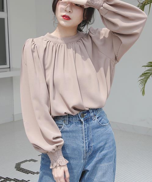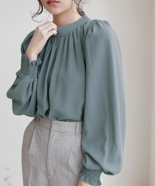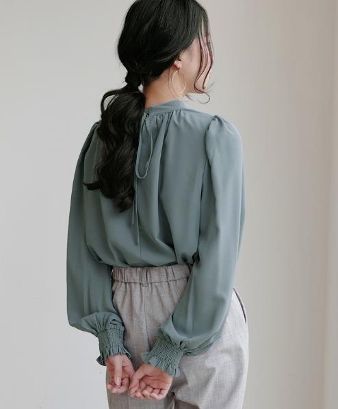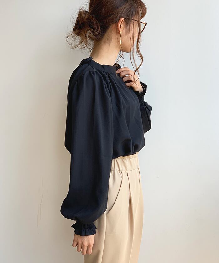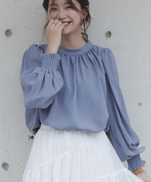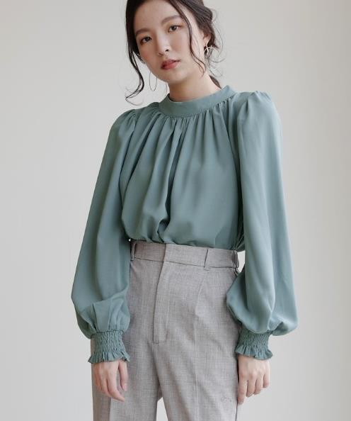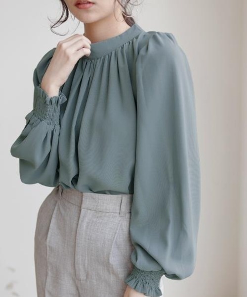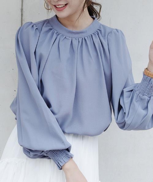 パフスリーブが女性らしさを引き立て、春秋冬にぴったりの一枚。
