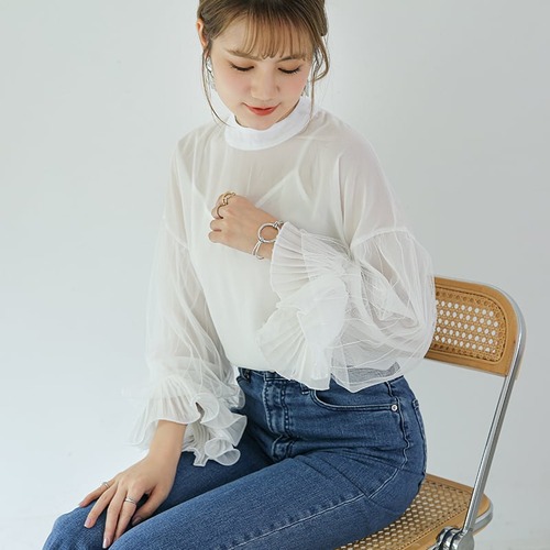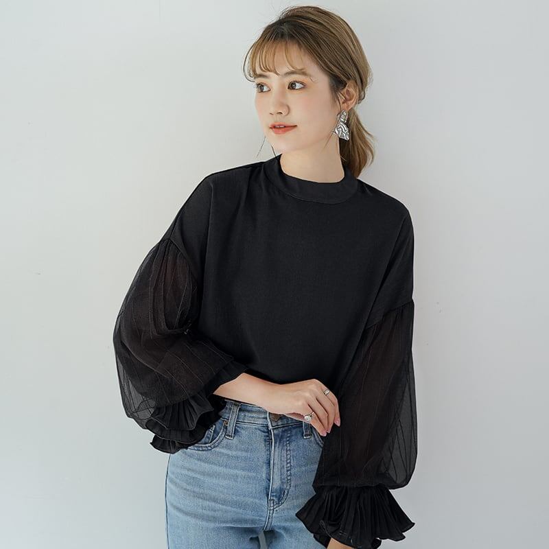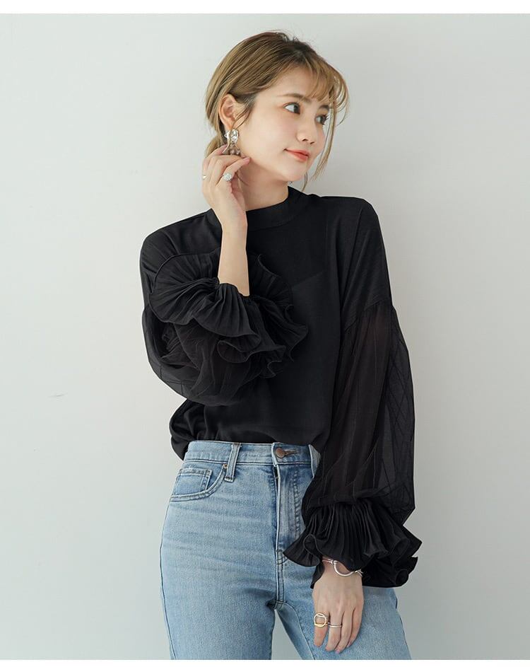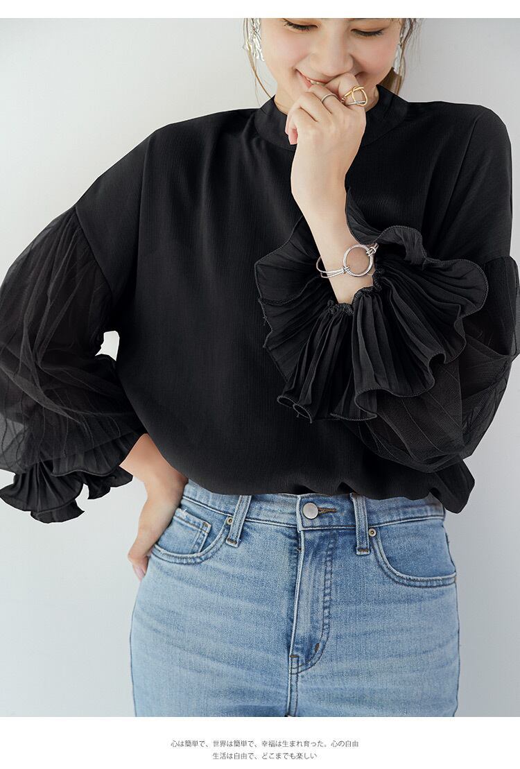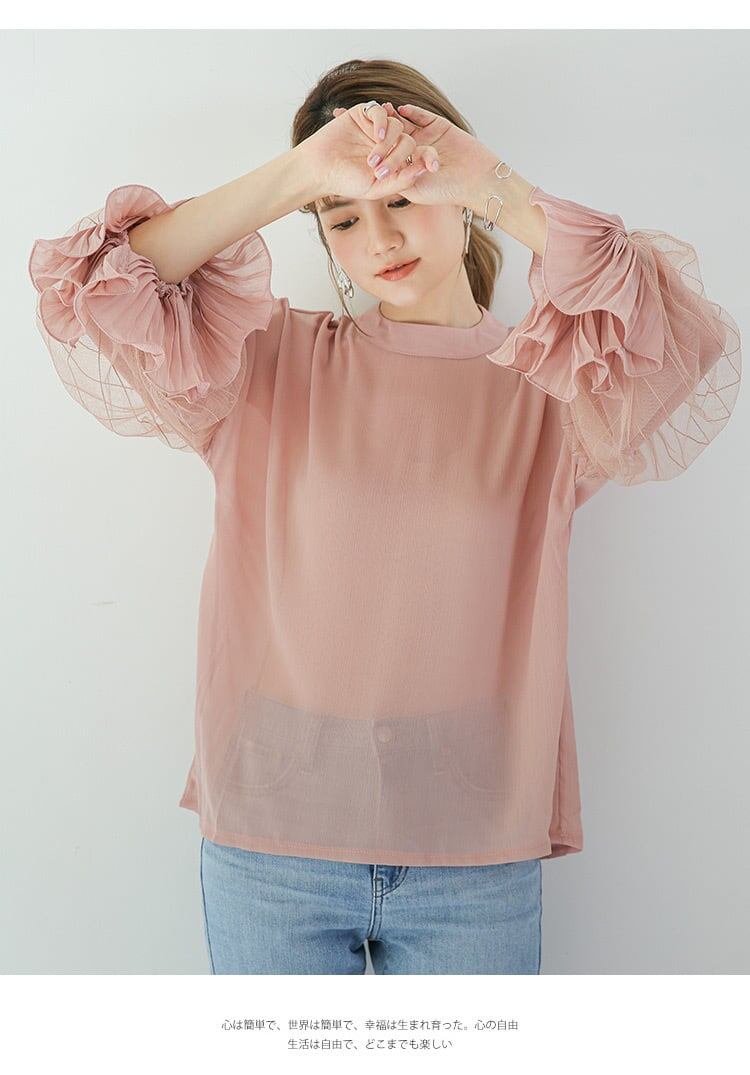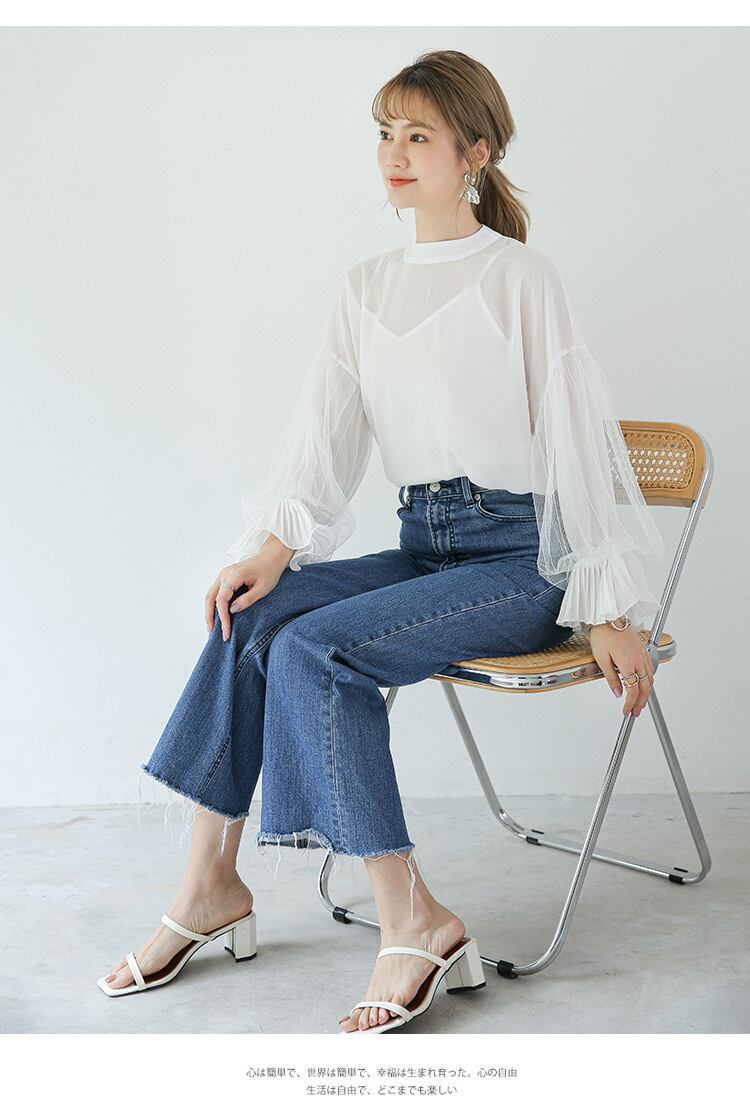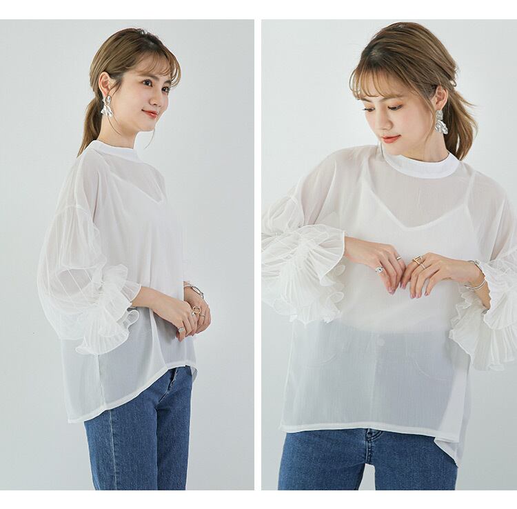 フリル袖で大人可愛いスタイルを演出、デイリーユースにぴったり。