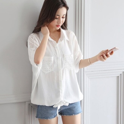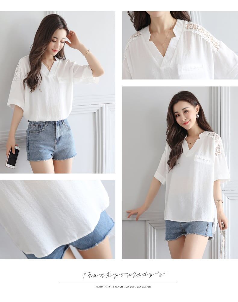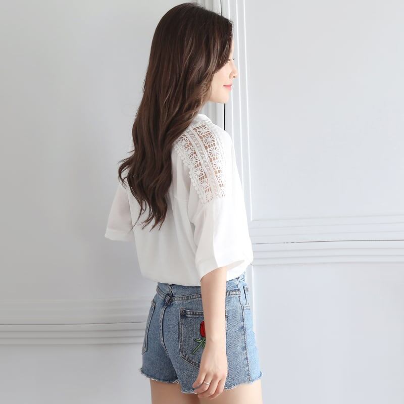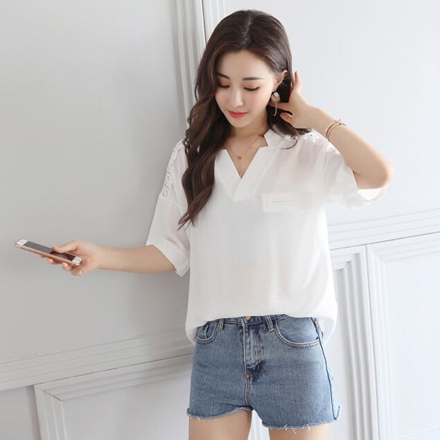 送料無料 春新作 レディース 透け感シフォンレースフリル半袖ブラウス 白 春夏秋冬 大人可愛い オフィス通勤 大きいサイズ 韓国ファッション