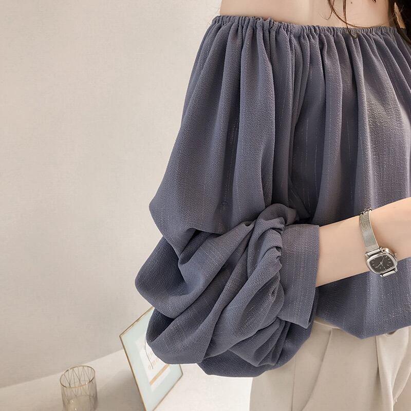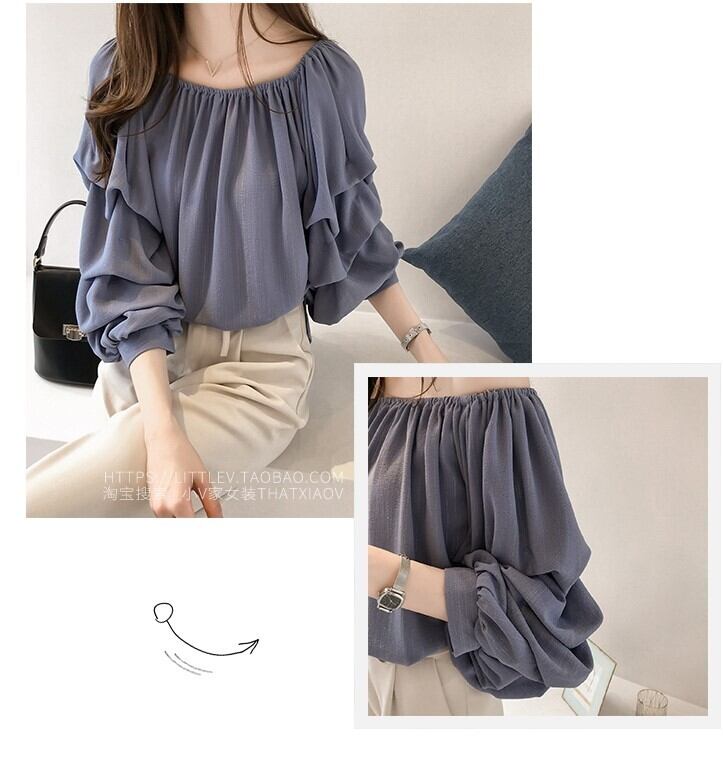 送料無料 レディース 春秋冬シフォンオフショルダー長袖ブラウス 白 大きいサイズ 大人可愛い フォーマル 通勤 オフィス 韓国ファッション
