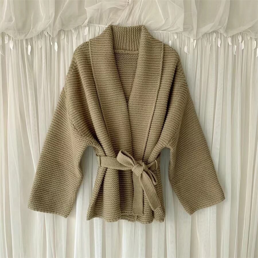送料無料 ショートニットカーディガン レディース Vネック 厚手ざっくりゆったり 無地 長袖 秋冬新作おしゃれ 韓国風カジュアル シンプルカラー