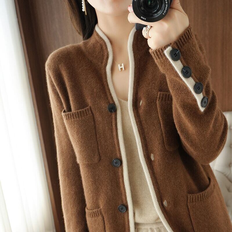 送料無料 レディースざっくりニットカーディガン 選べるカラー 春秋 無地 厚手ロング丈 ゆったりシルエット 着回し抜群 韓国ファッション 長袖