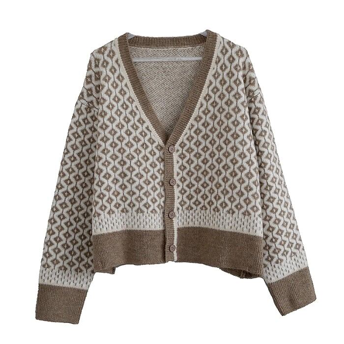 春秋のコーデに最適なダイヤ柄カーディガン!