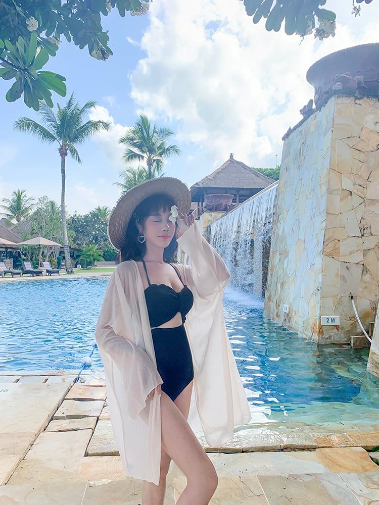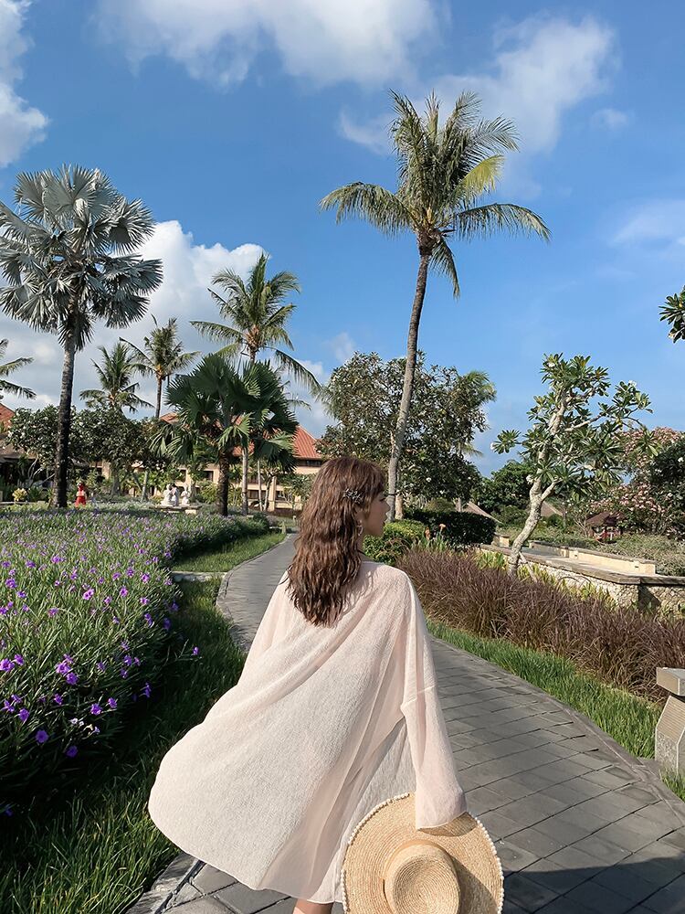 UVカット機能で日焼けを防ぎ、リゾートシーンにもぴったり。