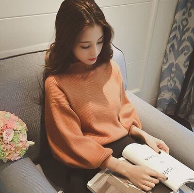 送料無料 レディース シンプルきれいめ ハイネック ドロップショルダー ゆったり ニットセーター フリーサイズ 春秋冬 韓国ファッション 6色展開