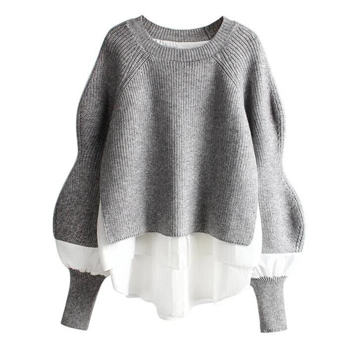 送料無料 レディース韓国ニットセーター ラウンドネックゆったりニットトップス 秋冬シンプル大人可愛いフリーサイズ ブラック ホワイト グレー