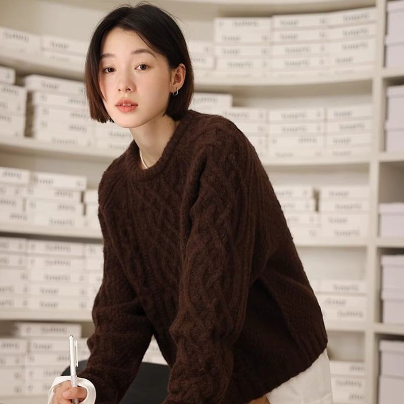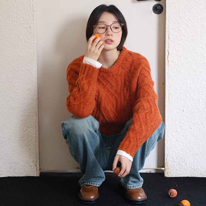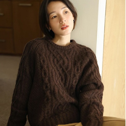 送料無料 ケーブルニットセーター レディース ラウンドネック 春秋冬 大人カジュアル 20代30代40代ママ向け ホワイト オレンジ ブラウン