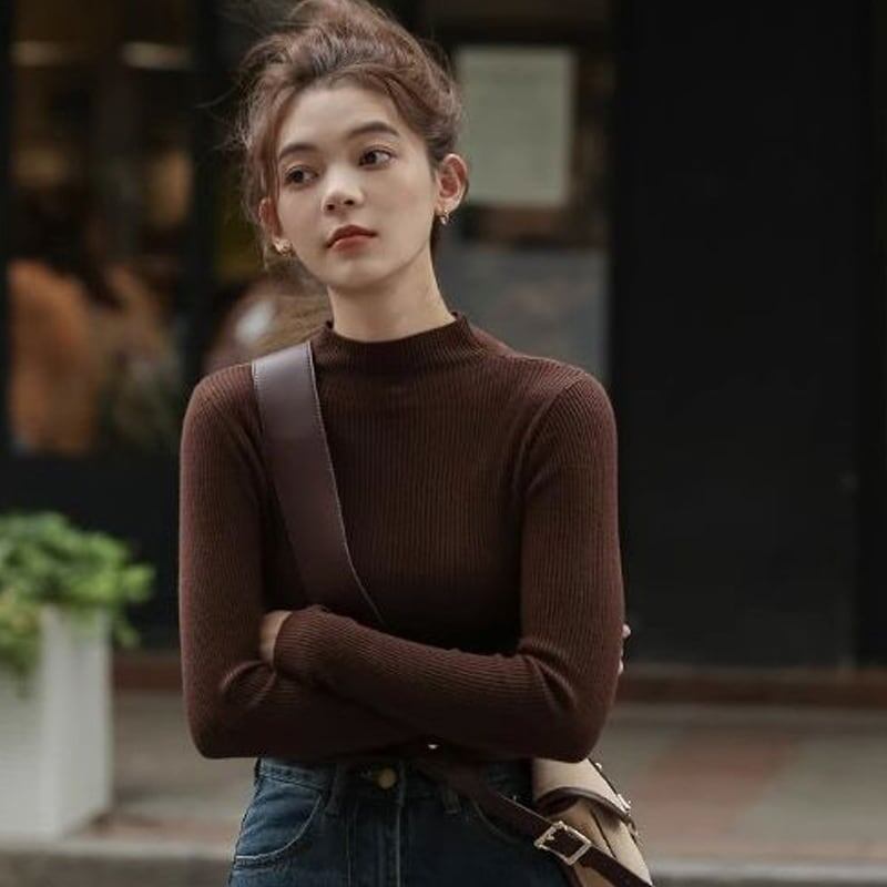 送料無料 レディース ニットトップス 薄手リブ モックネック 春秋冬 韓国ファッション 大人可愛い 20代30代40代 通勤通学 シンプル