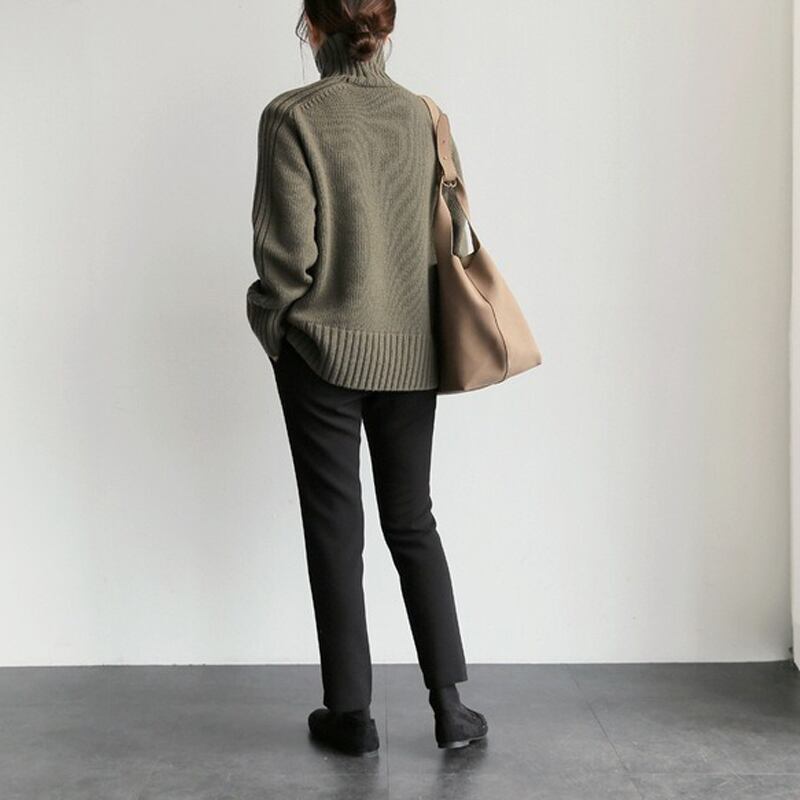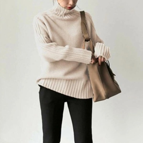 送料無料 レディースリブニットセーター ラウンドネック フリーサイズ 春秋冬 韓国ファッション シンプル 大人可愛い デイリー 20代から40代ママに