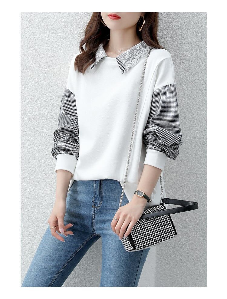 送料無料 レディース カジュアルドッキングニットセーター ニットトップス 韓国ファッション 春秋冬 選べる3色(グレー ブラック パープル)