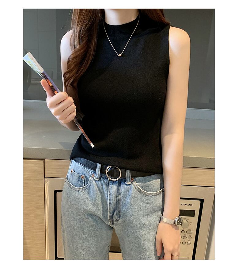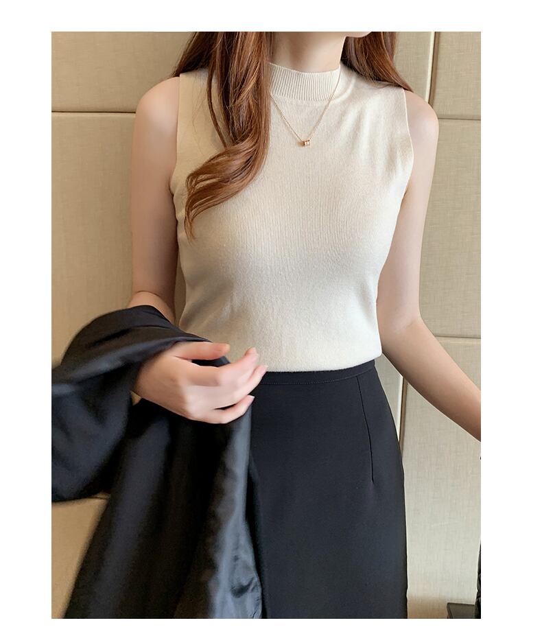 送料無料 トップス 薄手リブ編みニット 無地 春夏 レディース ハイネックノースリーブキャミソール おしゃれ 大人可愛い 新作韓国ファッション