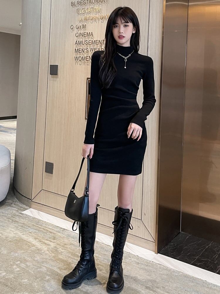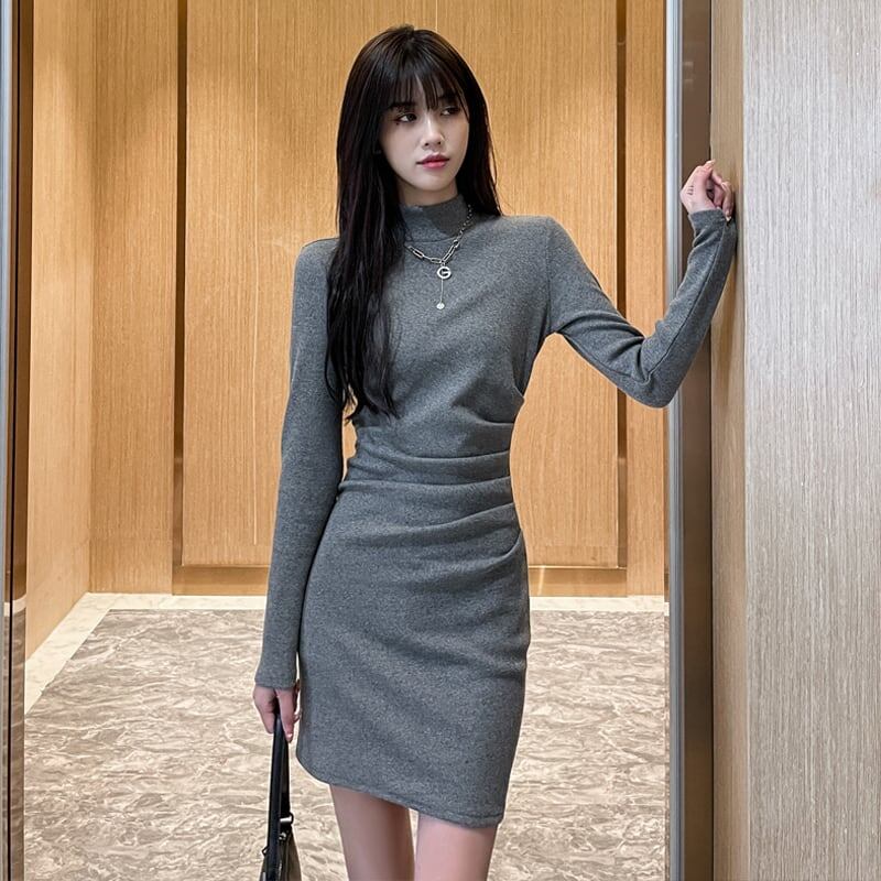 送料無料 レディース 韓国風 リブニット タイト ミニ丈 ワンピース 大きいサイズ 長袖 カジュアル シンプル デイリー 春夏秋 コーデ ドレス