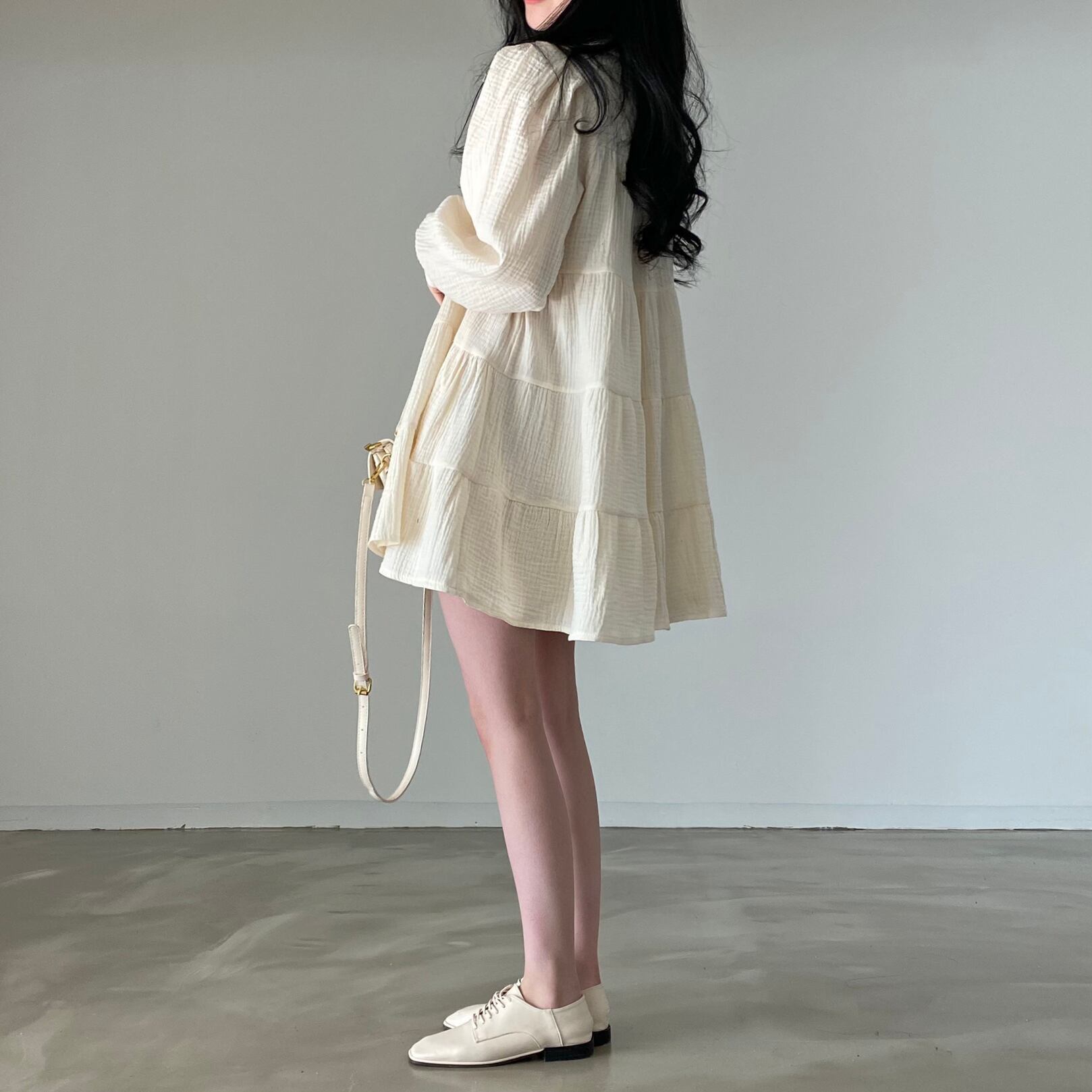 送料無料 レディースミニワンピース ティアード 韓国ファッション 無地 ワンピースドレス 長袖フレア Aライン 春夏秋カジュアル ワントーンコーデ