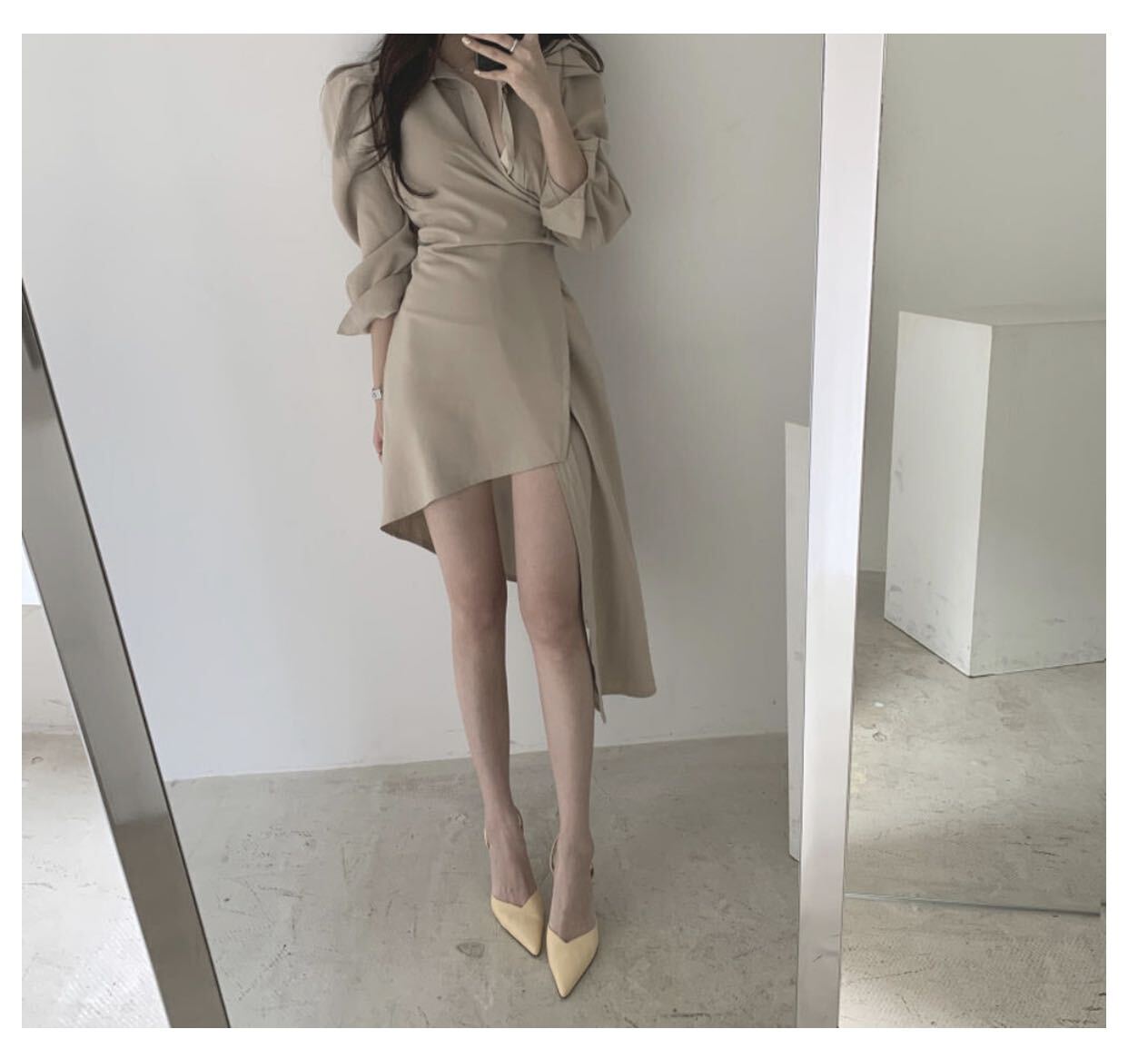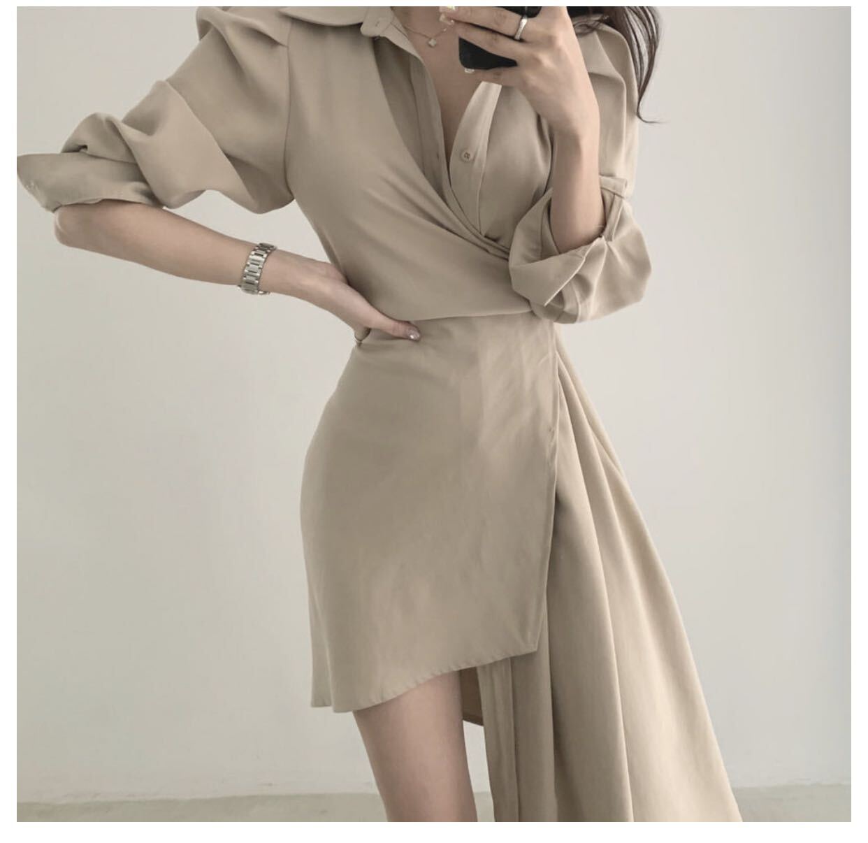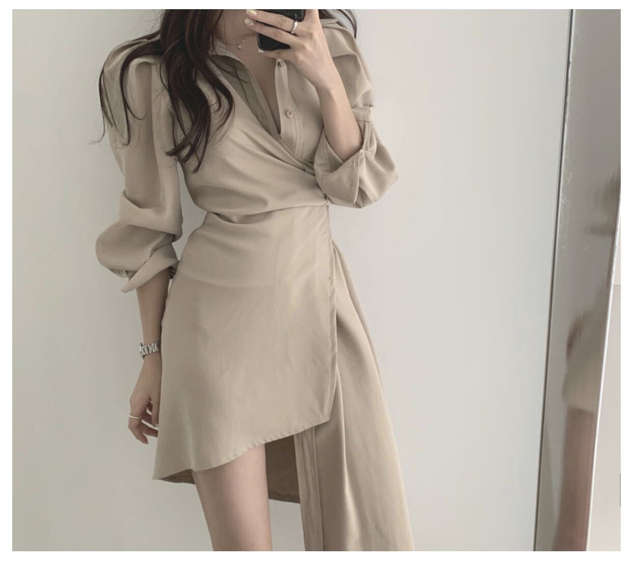 送料無料 春夏秋コーデ 人気韓国風長袖ミニ丈シャツワンピース タイトフレア カジュアル 大人フェミニンセクシー オフィス通勤デート女子会ドレス