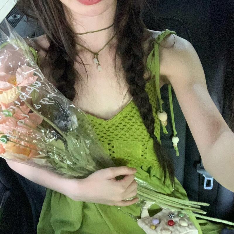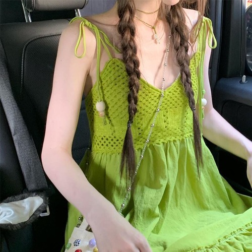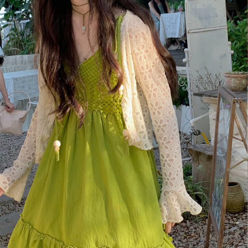 送料無料 春夏新作 マタニティ ロングワンピース レース 長袖 キャミ切替 レディース 韓国風 グリーン ナチュラルカジュアル 20代30代