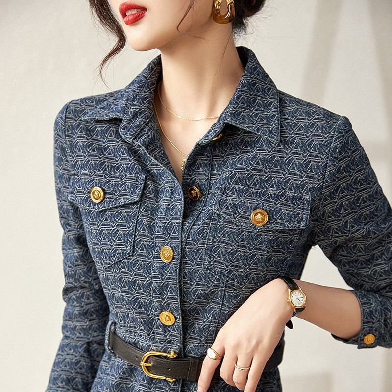ネイビーの落ち着いた色合いで、大人の魅力を一層引き出します。