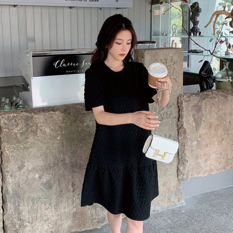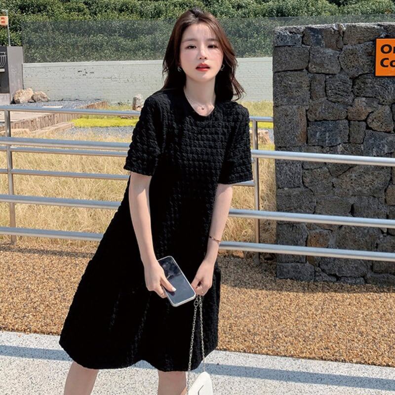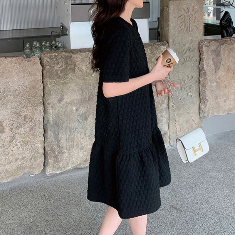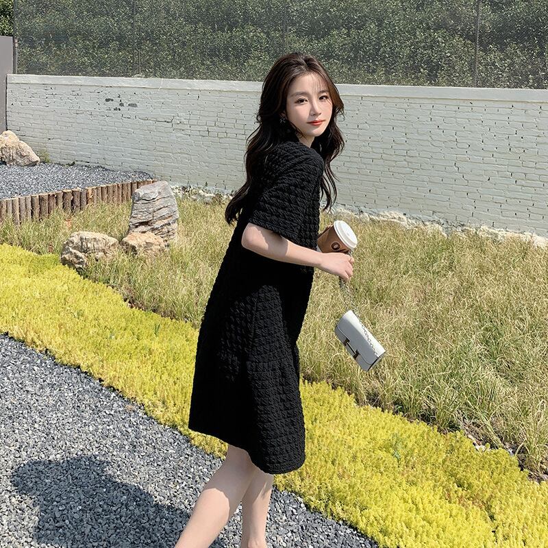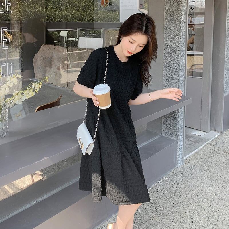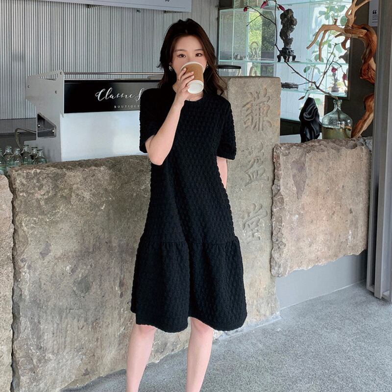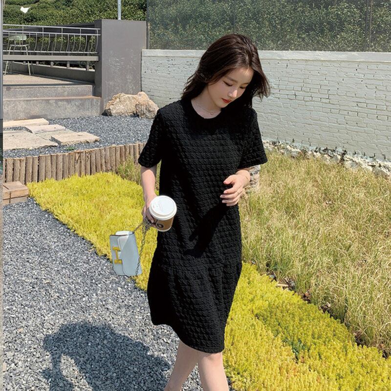 送料無料 春新作 レディース 春夏 マタニティワンピース 膝丈 Aライン フレアワンピース 韓国風 半袖 エンボス 春秋 レトロ 大人可愛い