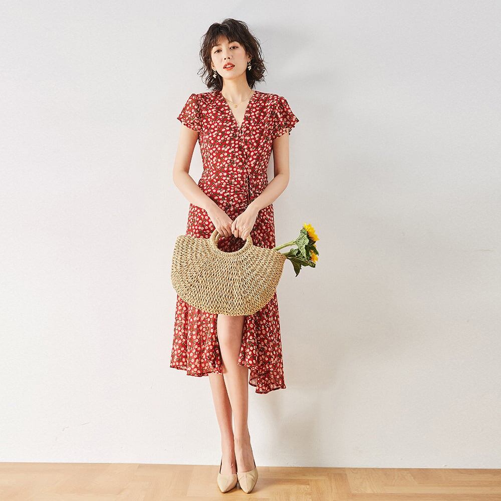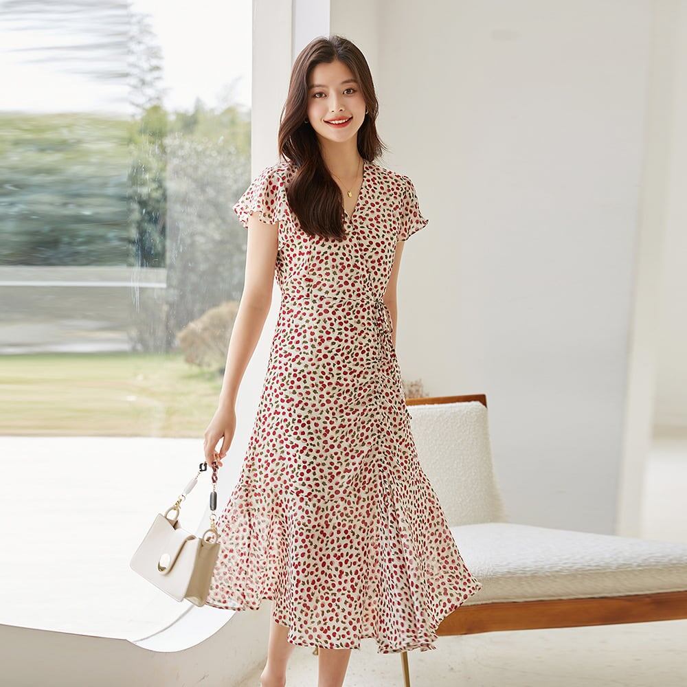 送料無料 レディース 春新作 春夏秋 大人可愛い マタニティ兼大きいサイズ対応 膝丈 膝下 半袖 花柄 Aライン 韓国風 フレアワンピース お出かけ