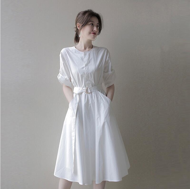 送料無料 春新作春夏秋兼用大人おしゃれレディース大きいサイズ七分袖Aラインワンピース膝下丈フレア韓国風きれいめデイリースタイル通勤オフィスカジュアル