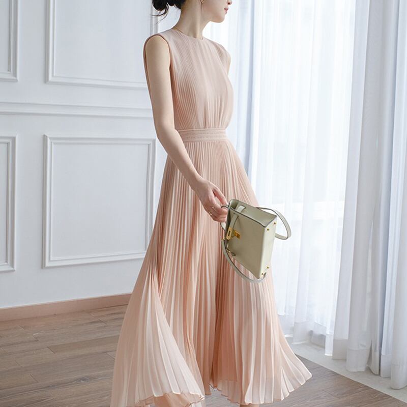 送料無料 春新作 ワンピース 春 夏 ロング マタニティ 無地 ロングワンピース レディース ロング丈 ノースリーブ 韓国ワンピース ドレス ピンク プリーツワ