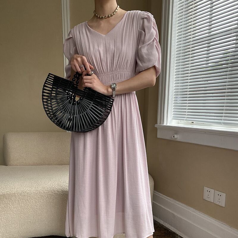 送料無料 春新作 ワンピース 春 夏 ロング マタニティ 無地 ロングワンピース レディース ロング丈 半袖 韓国ワンピース イエロー ホワイト パープル グレ