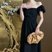 送料無料 春新作 ワンピース 春 夏 ロング マタニティ 無地 ロングワンピース レディース ロング丈 半袖 韓国ワンピース ブラック ブルー 2way オフシ