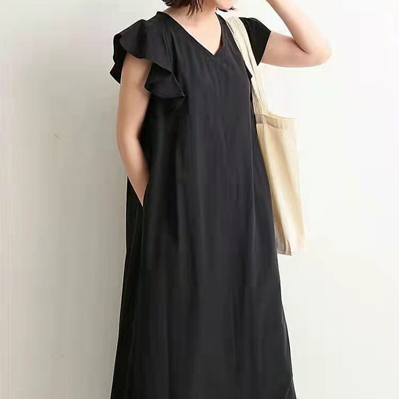 送料無料 春新作 ワンピース 春 夏 ロング マタニティ 無地 ロングワンピース 大きいサイズ レディース シャツワンピース ロング丈 半袖 韓国ワンピース イ 2