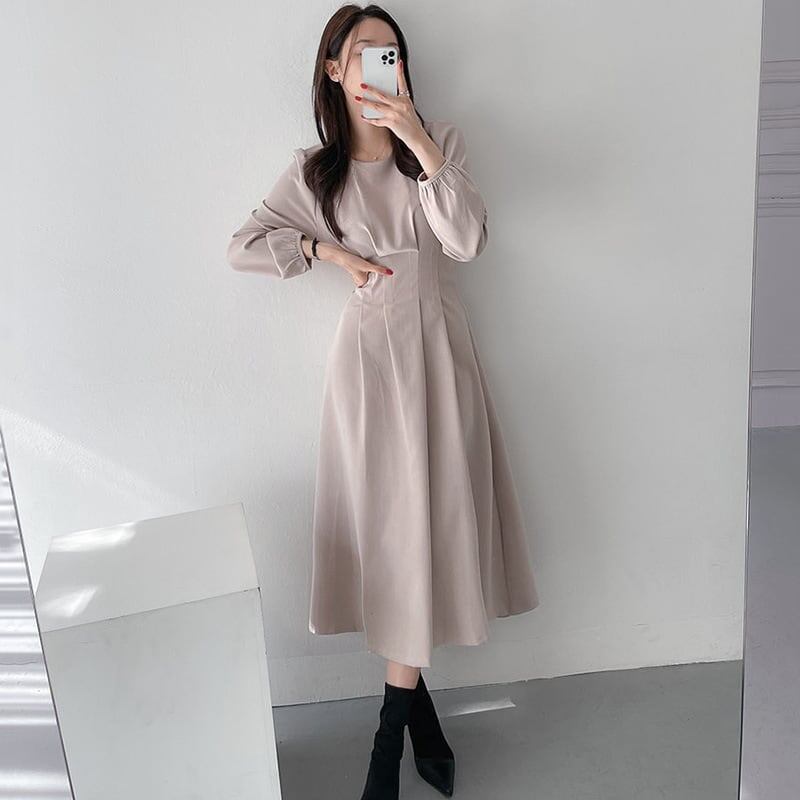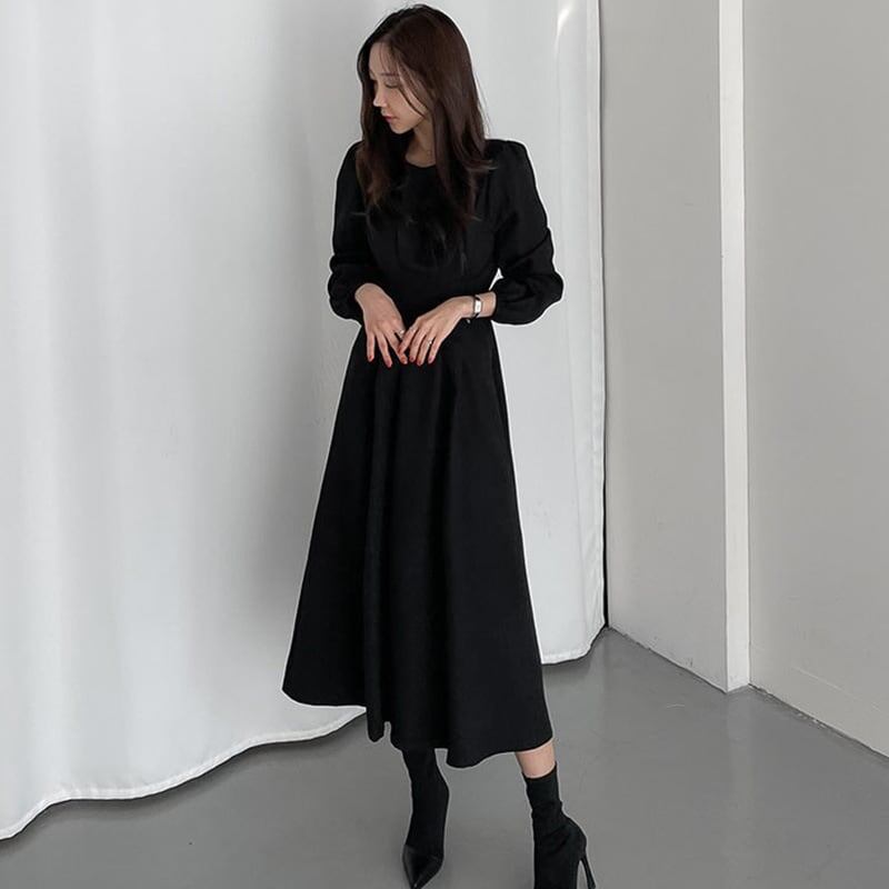 送料無料 春新作 ワンピース 春 夏 ロング マタニティ 無地 ブラック ベージュ ブルー フレアワンピース ロングワンピース レディース ロング丈 長袖 韓国