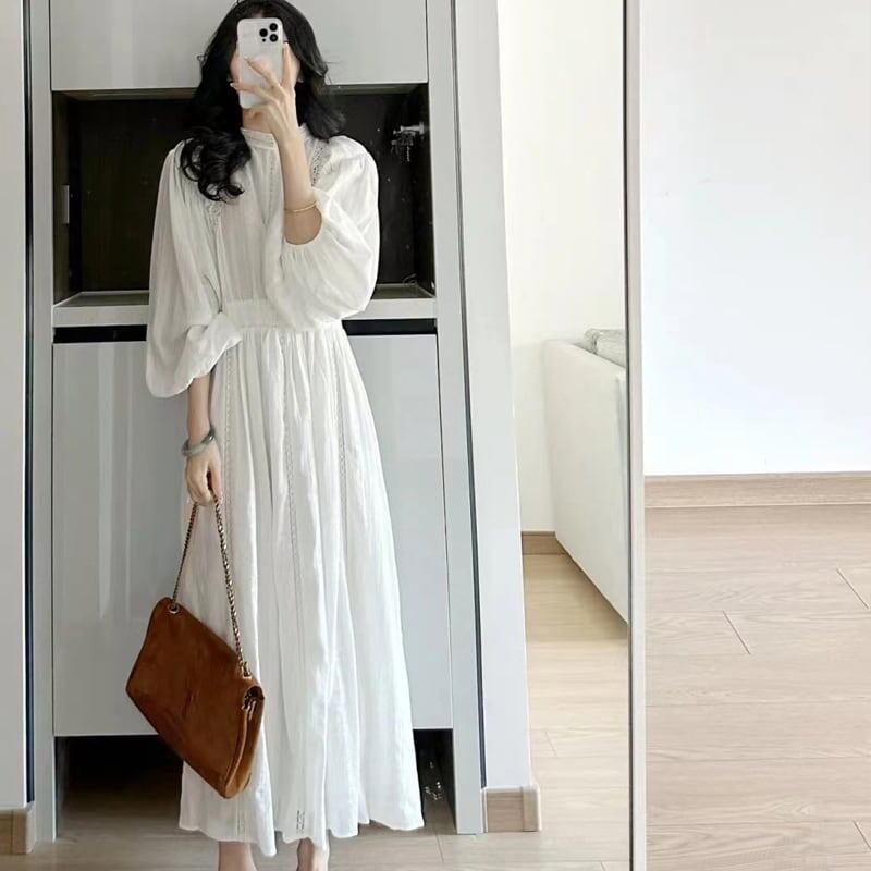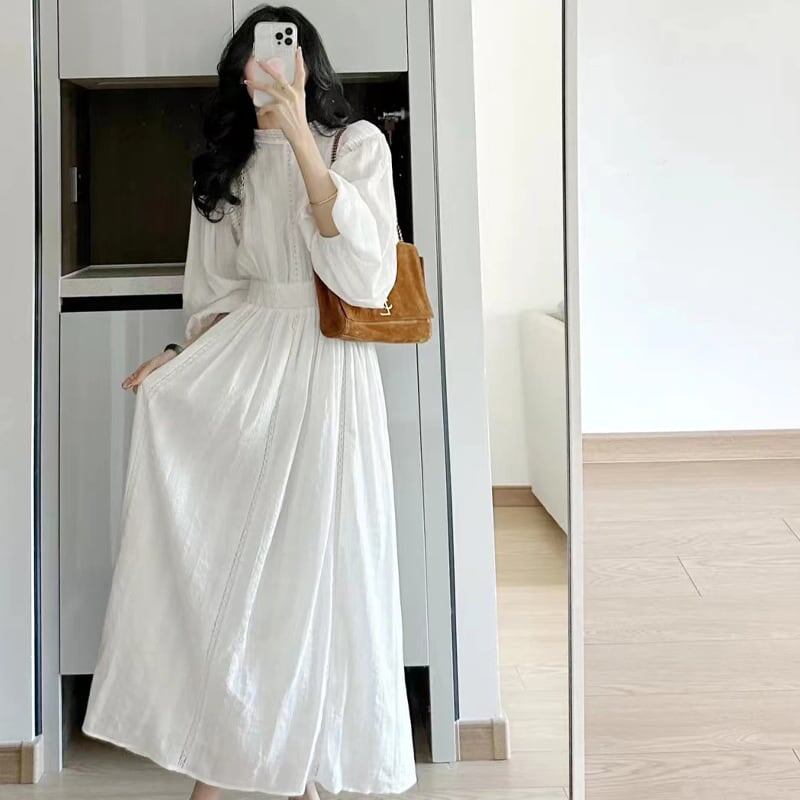 送料無料 春新作 ワンピース 春 夏 ロング マタニティ 無地 ロングワンピース レディース シャツワンピース ロング丈 韓国ワンピース 長袖 ホワイト 20代