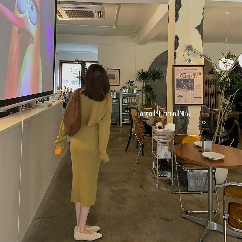送料無料 ワンピース 春 秋 冬 ロング ロングワンピース レディース ロング丈 長袖 ニットワンピース タイトワンピース リブ加工 韓国ワンピース 20代 3