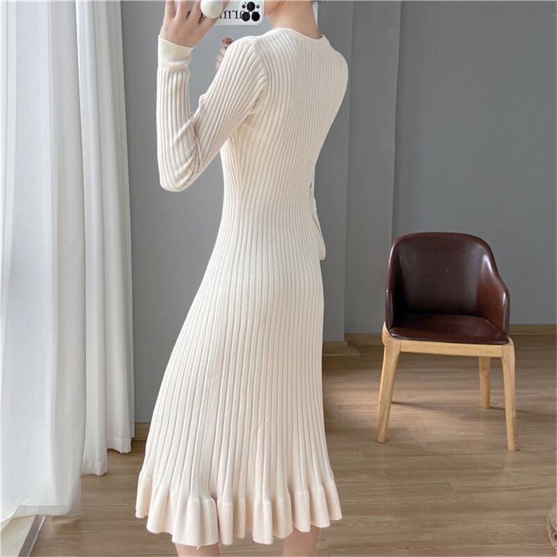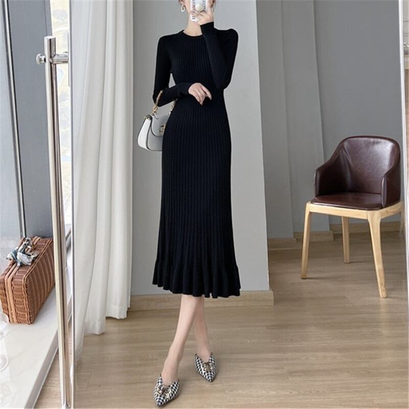 送料無料 ワンピース 春 秋 冬 ロング マタニティ 無地 ロングワンピース フリーサイズ レディース ロング丈 長袖 ニットワンピース 韓国ワンピース プリー