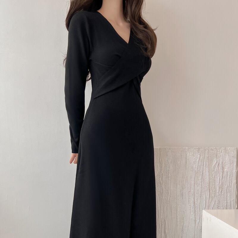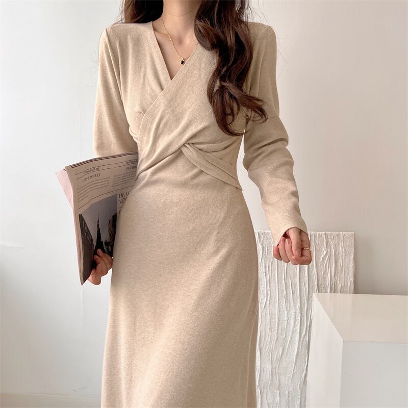 送料無料 ワンピース 春 秋 冬 ロング 無地 ロングワンピース レディース ロング丈 長袖 ニットワンピース 韓国ワンピース 20代 30代 シンプル 大人可 2